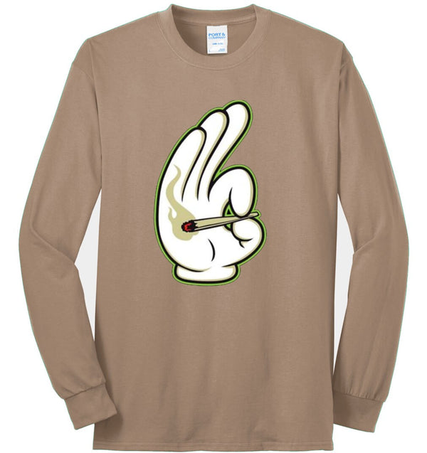 Long sleeve - quality mid-weight 5.4oz 50/50 blend (may require an additional 7 days before shipping depending on in stock availability). 100% cotton may be substituted if 50/50 is out of stock.